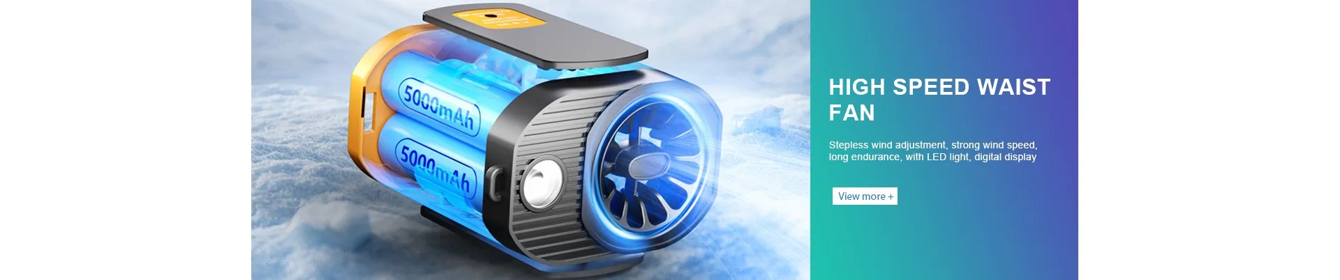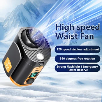 2025 New High Speed Waist Fan 10000mAh USB Portable Hanging Waist Clip Rechargeable Fan With Power Bank Flashlight
